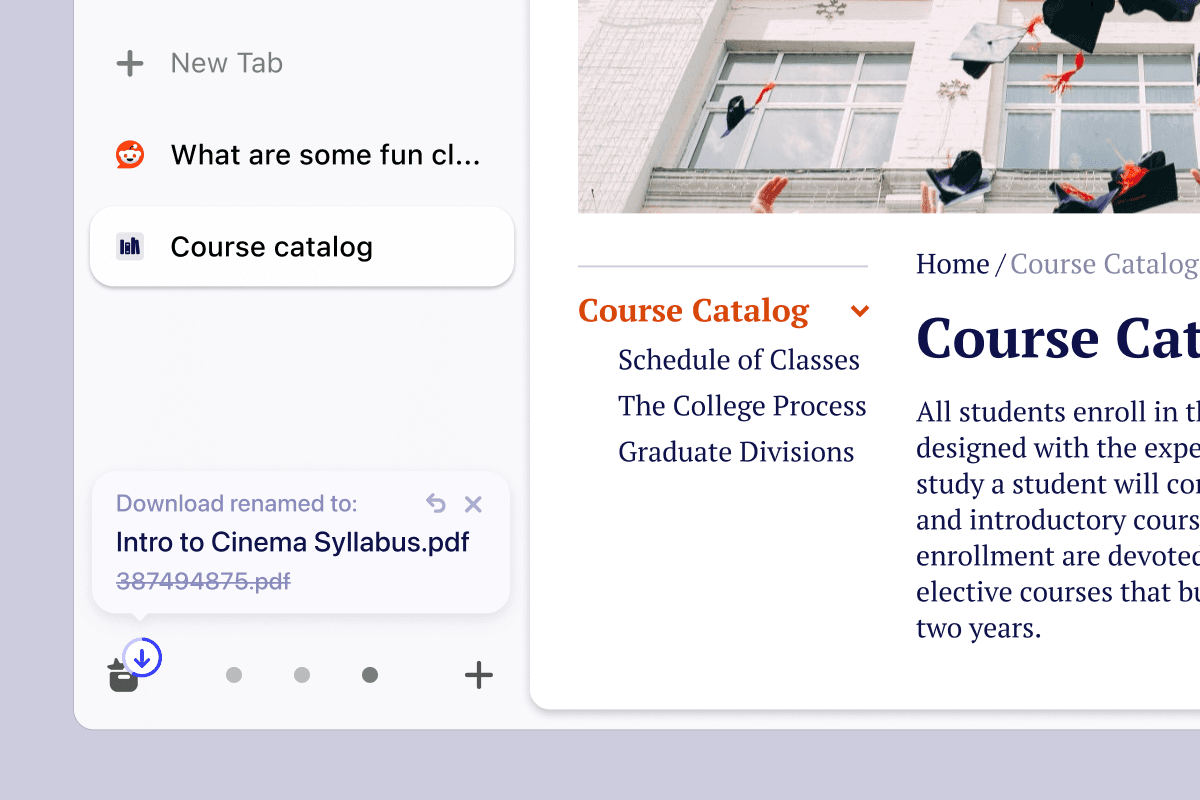 Smart downloads, split views, picture-in-picture, AI-powered features, and more. Arc is packed with features that help you stay on top of it all.